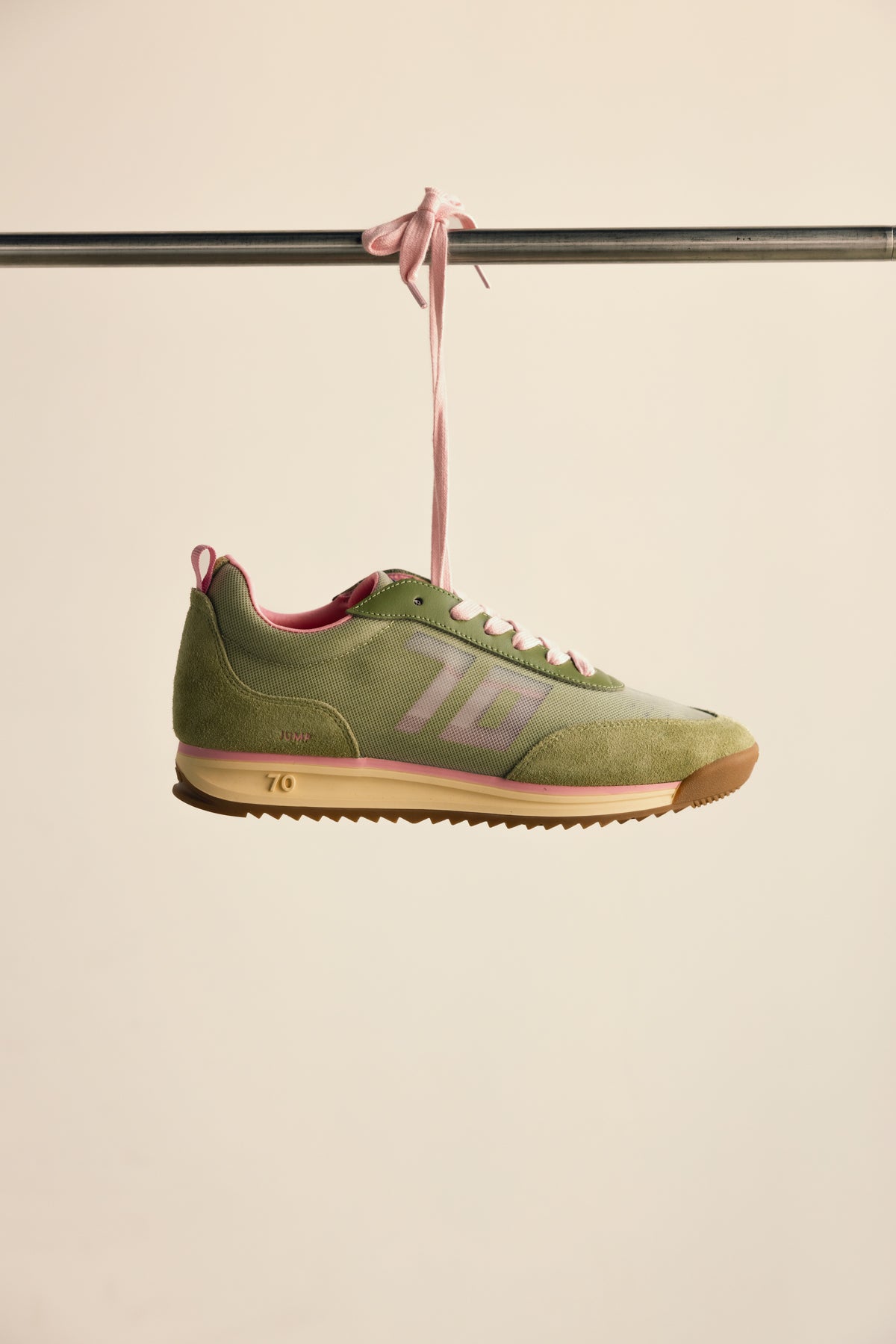 Enter an era of transparency in Jump¿a running-style vintage sneaker illuminated with floating effects and unexpected surfaces. Frosted light radiates through delicate overlays in a retro-futuristic aesthetic that is neither artificial nor entirely natural. Romantic pastels and abstract color block designs are both soft and discreet, white blending culture and creative impulse for a style that brings conceptual energy into the light.